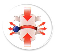 Fuertes presiones causan que los discos se salgan y presionen terminaciones nerviosas. La descompresión espinal sin cirugía DE produce presión negativa dentro del disco, los expertos piensan que creando un efecto de vacio se logran atraer nutrientes y fluidos que promueven la curación de los discos dañados, así como de los tejidos circundantes. Este vacío ha probado también ser útil en el repliegue del gel que se ha escapado de los discos herniados.